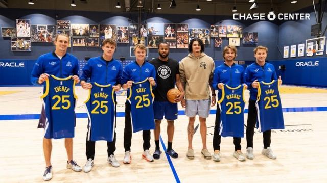 直播吧9月19日讯 近日,欧洲球队造访勇士球馆,大通中心官方晒出球队欢迎他们的照片,其中穆迪的新造型非常吸睛。