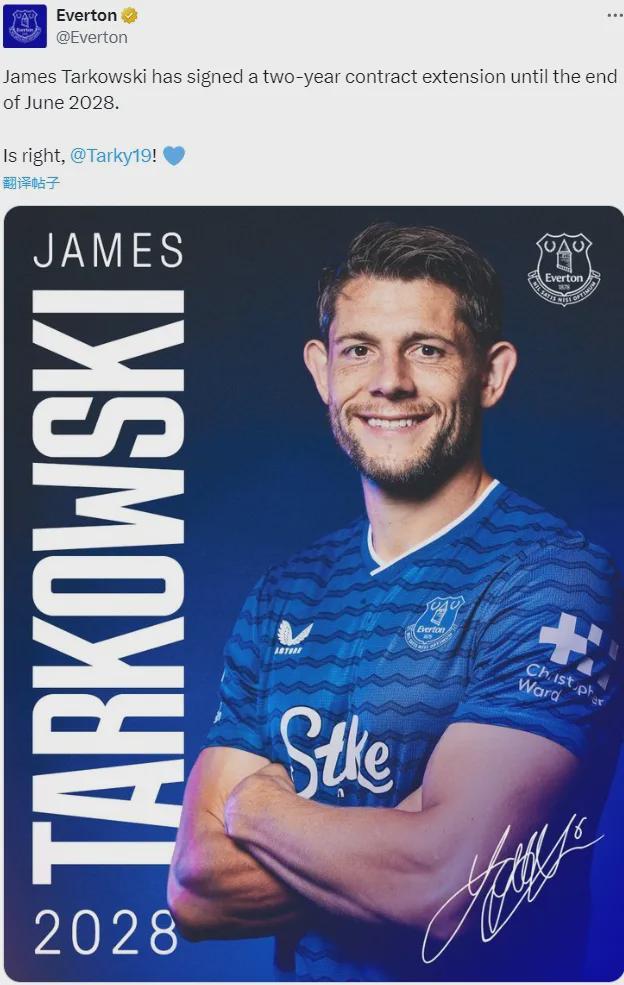 官方:埃弗顿宣布和塔可夫斯基续签了2年合同,这名后卫的新合同将在2028年到期。