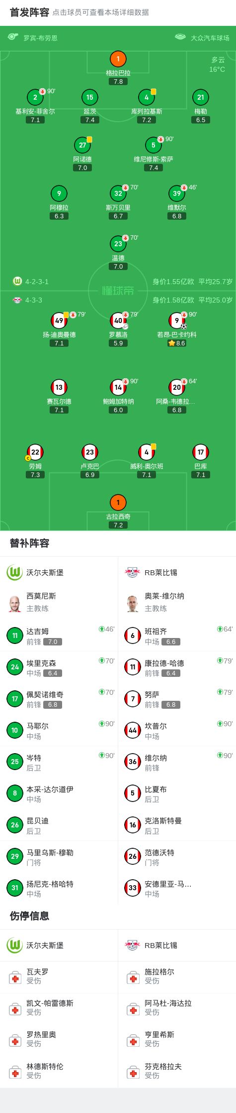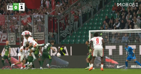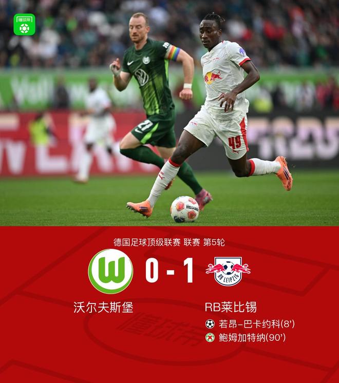 莱比锡1-0沃尔夫斯堡,巴卡约科制胜,鲍姆加特纳失点