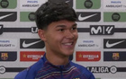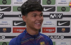 在巴萨2-1击败皇家社会的联赛中,17岁的拉玛西亚中场德罗-费尔南德斯迎来了在一线队的首秀,赛后他接受了媒体采访。晚上好,感觉怎么样?晚上好。我很开心,非常开心,这不可思议了。心
