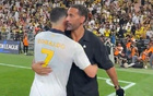 老友相见!C罗拥抱前来观战的费迪南德,两人亲切交流